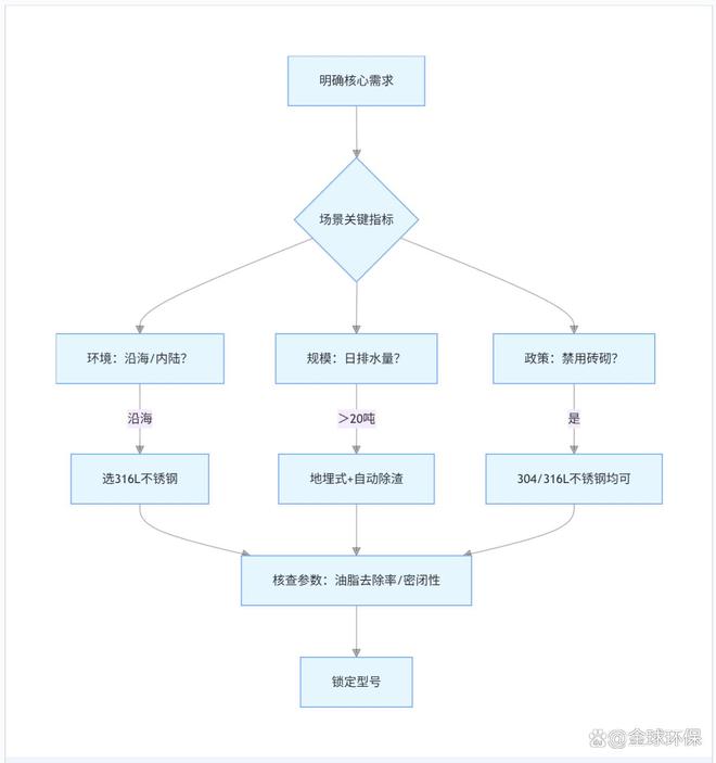 •排放达标:需确保油脂去除率≥90%(中型设备可达 95% 以上),满足 GB/T31962-2015 标准。